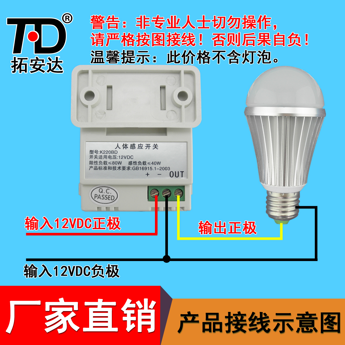 Tuo Anda DC12V three-wire human body infrared sensor switch adjustable wardrobe cabinet LED light controller