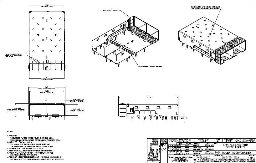 New Original SFP Plus (SFP) Cage 1-by-2 Ganged 747540220