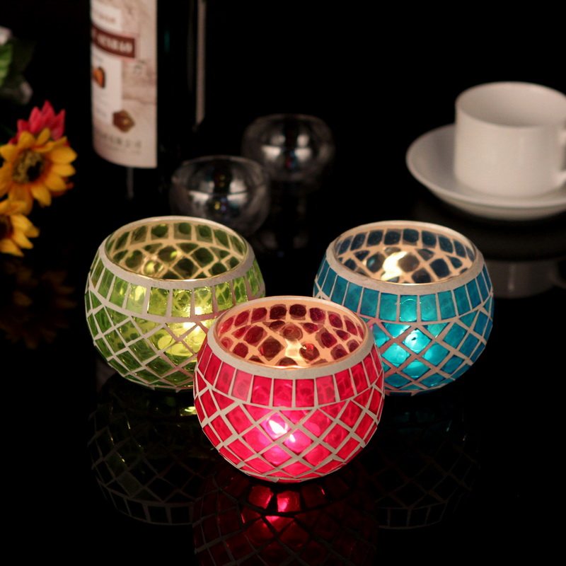 Wedding props Windproof lantern Glass stickers Gift candlelight dinner Mosaic Valentine's Day European style candle holder