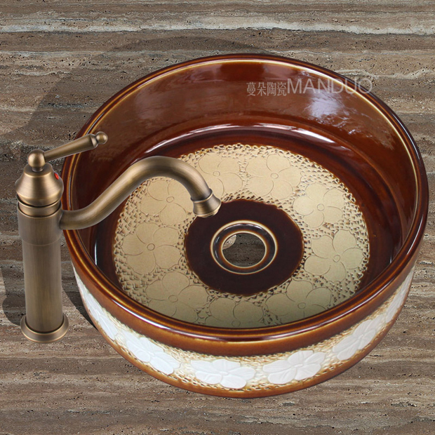Jingdezhen Handwashing washbasin Art Terra basin Fashion bathroom cleaning utensils upscale Carved Relief Handwashing Desk Basin