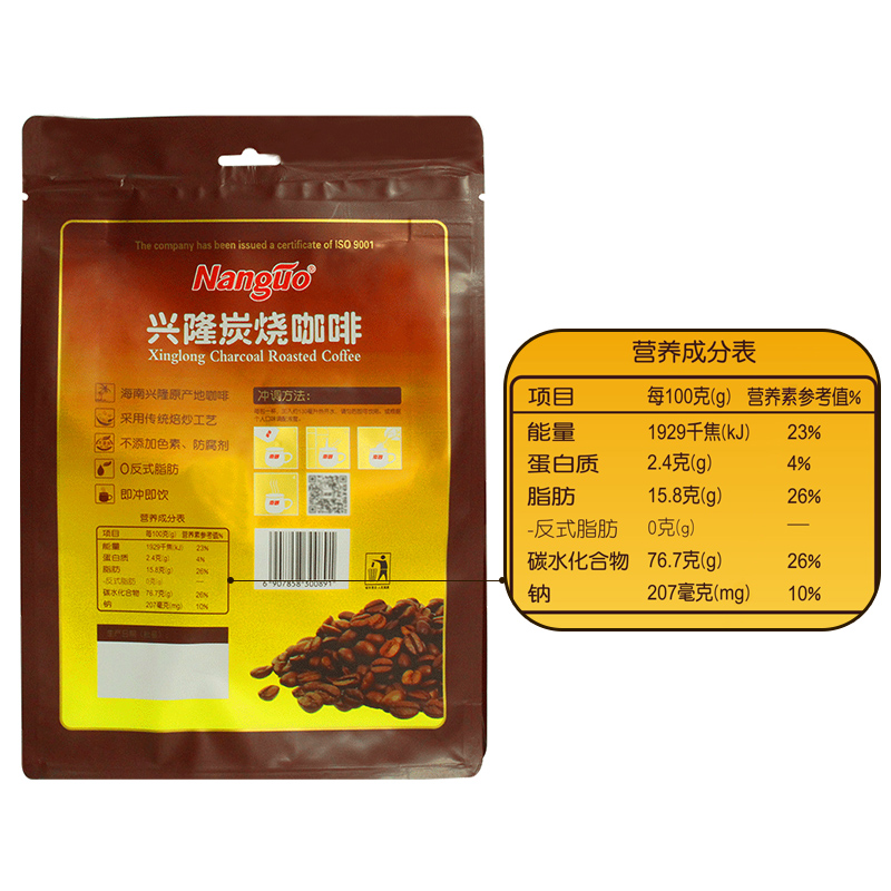 Nanguo Food Hainan specialty Xinglong charcoal coffee 320g bag instant coffee powder small bag original flavor refreshing