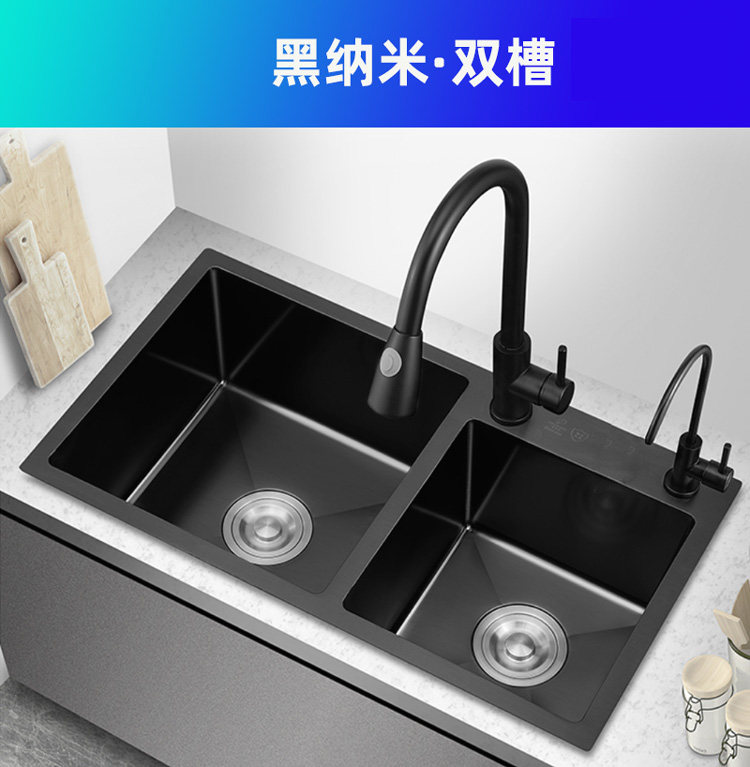 (13 Years Old Shop) Black Nano Sink Double Sink Black Gold Steel Wash Vegetable Basin Kitchen Multifunction Thickened Manual Groove