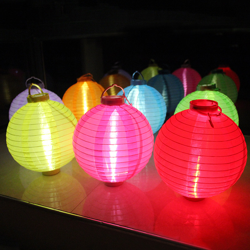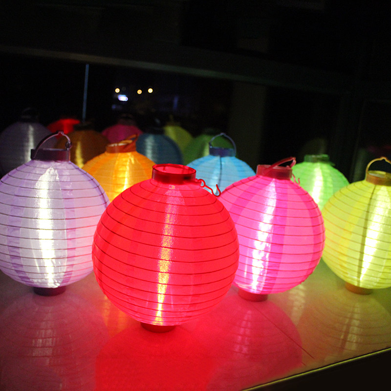 New Year's Lantern Festival Mid-Autumn Festival Red lantern round decoration hanging LED battery waterproof outdoor hand lantern paper paper lamp