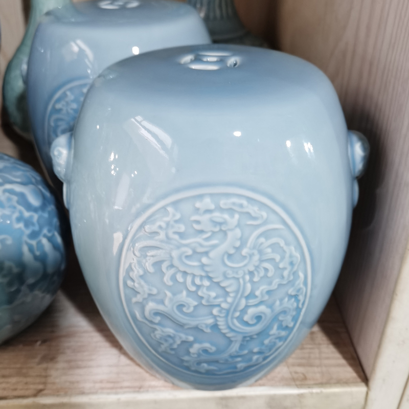 Jingdezhen porcelain ceramic stool outdoor balcony garden supplies elegant blue and white porcelain stool dragon pattern