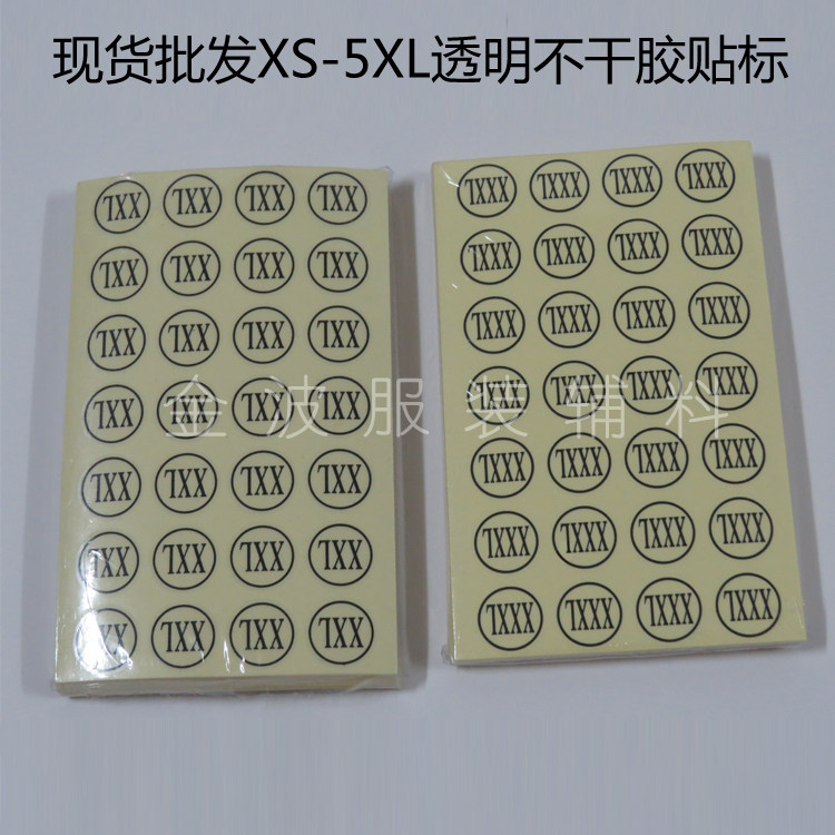 Wholesale self-adhesive size sticker plastic PVC transparent label size 2 5CM diameter XS-6XL can be customized