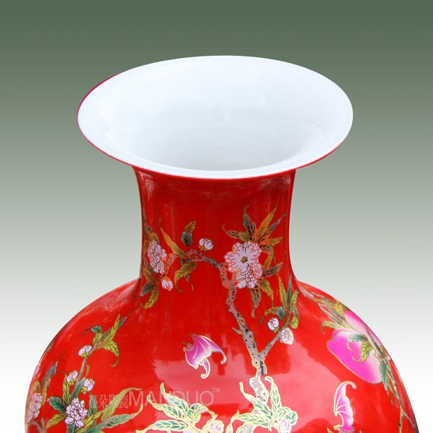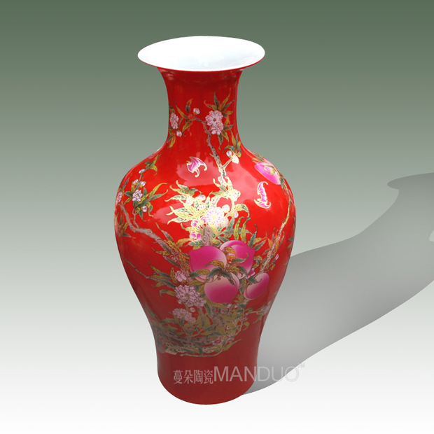 Jingdezhen ceramic big red fairy peach flower vase elders make high-end gifts for birthday big red pastel festive vase