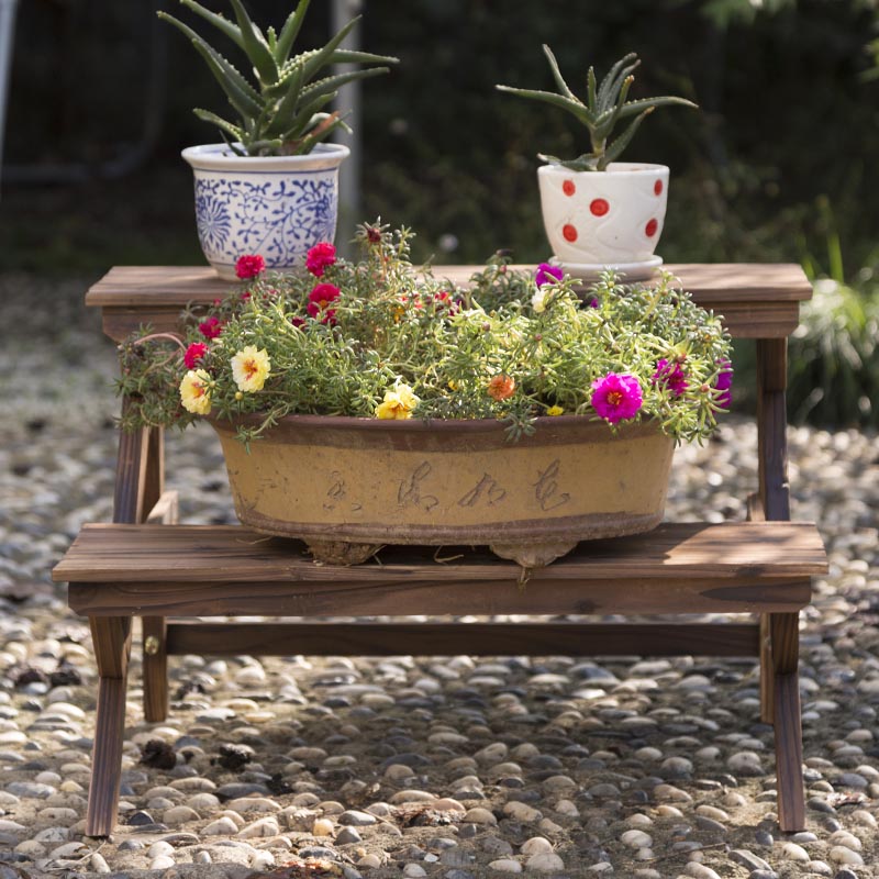 Anti-corrosion Wood three-layer meaty display stand for orchids special flowers and trees stairs floor-to-ceiling garden balcony large flower stand