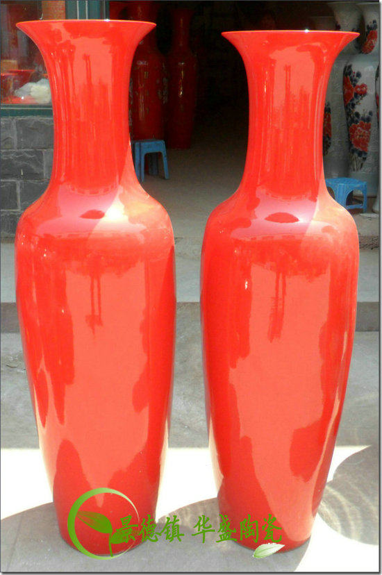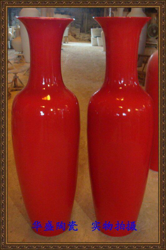 Jingdezhen ceramic floor large vase China red all red no pattern 1 21 4-1 8 m