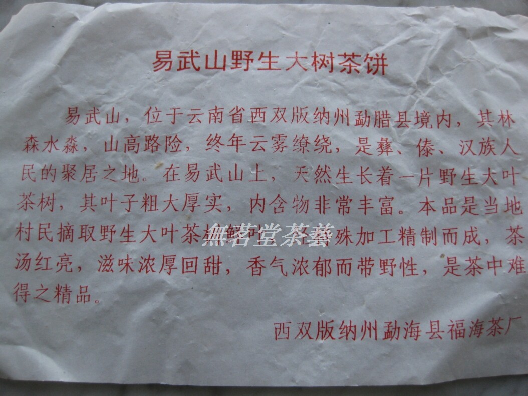 Menghai Fuhai Tea Factory 2003 Yi Wu Zhengshan wild tea 03 Green tree storage