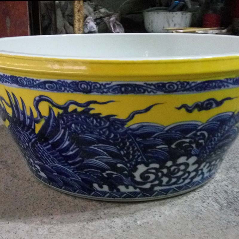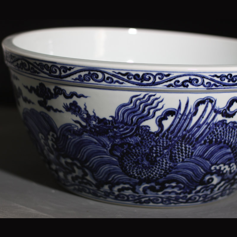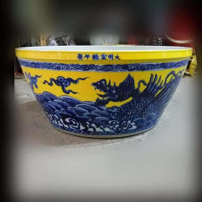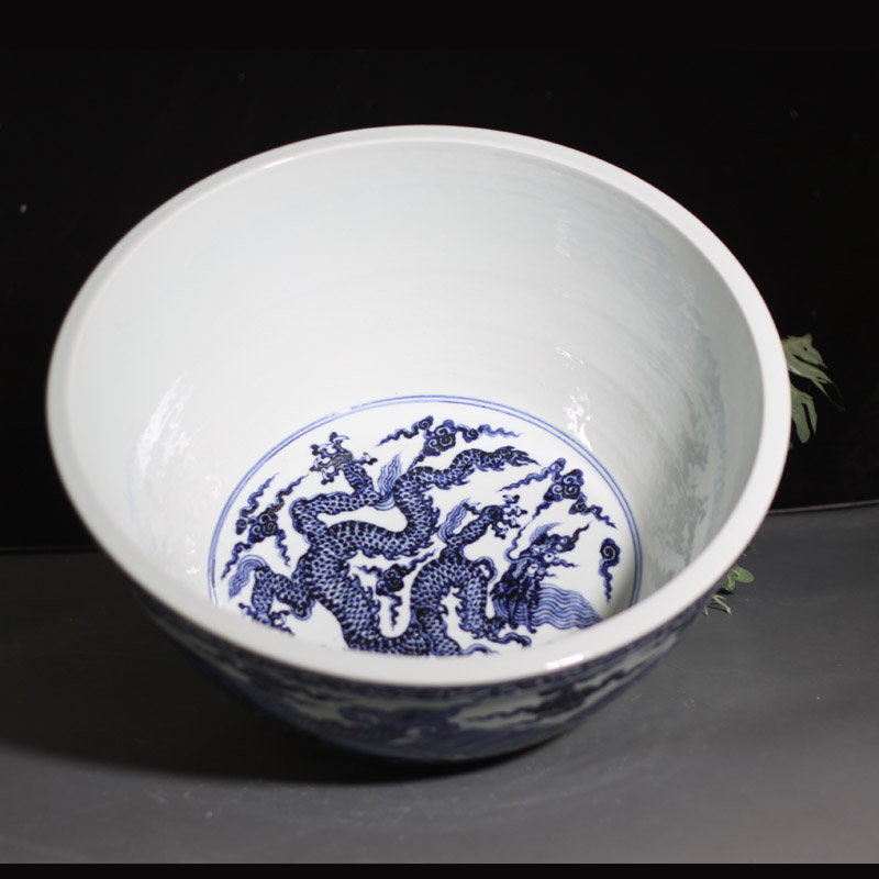 Antique Xuande seawater dragon tattooed large bowl of winged dragon tattooed large bowl Feng Shui Dragon Tattooed Poly Basin-Taobao