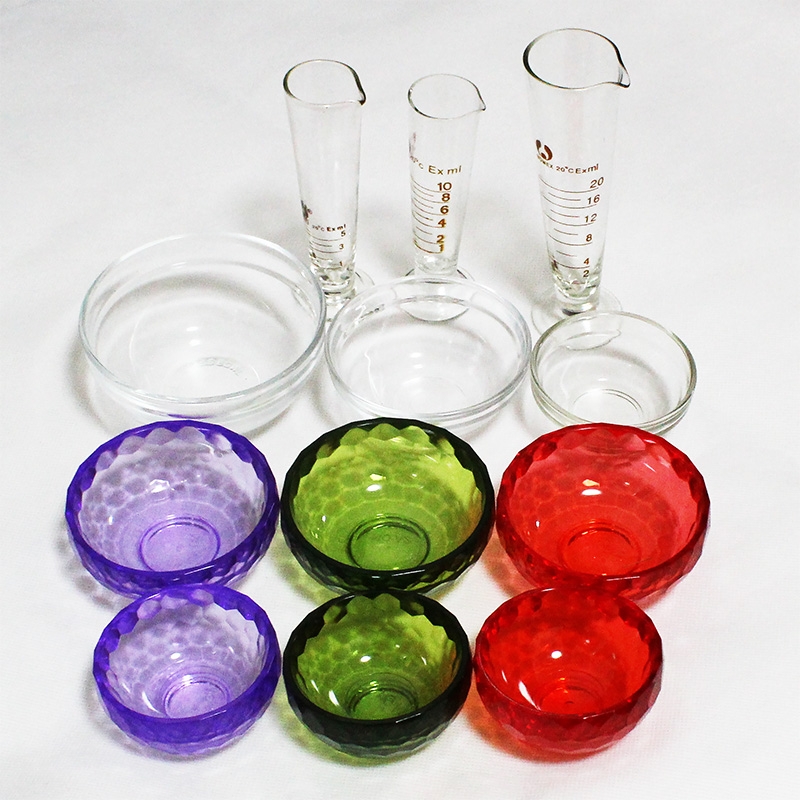 White red pink 1 Number of glass cups (6cm) 2 Number of glass bowls (7 5cm) 3 Number of glass bowls (9cm) 4 Number of glass bowls (10 5cm) 1 Number of acrylic (purple