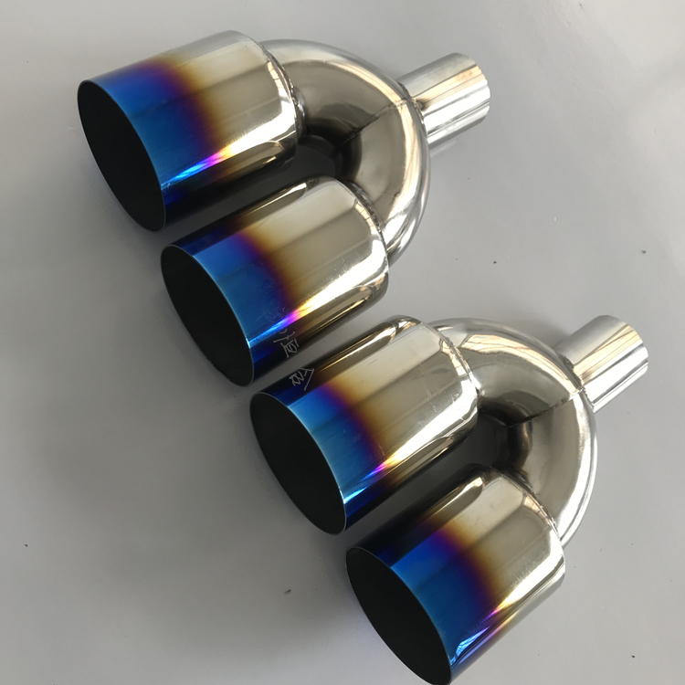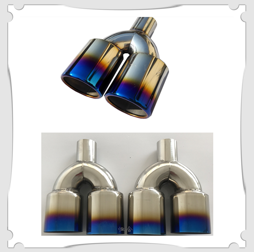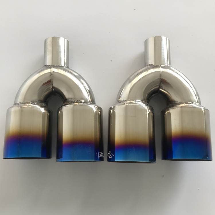 Automotive retrofit piece stainless steel welding modified exhaust pipe out of two large double pipe titanium blue mouth decorative tailpipe tailpipe
