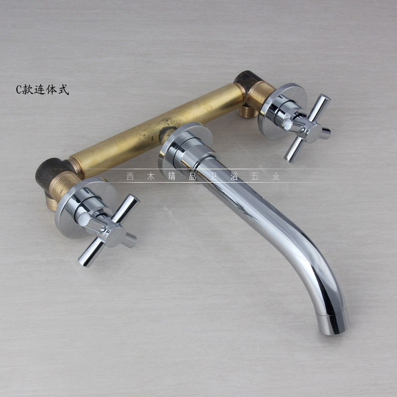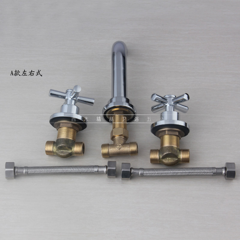 All copper cross double handle three holes bathroom cabinet concealed into wall type hot and cold water basin faucet two-piece one-piece type