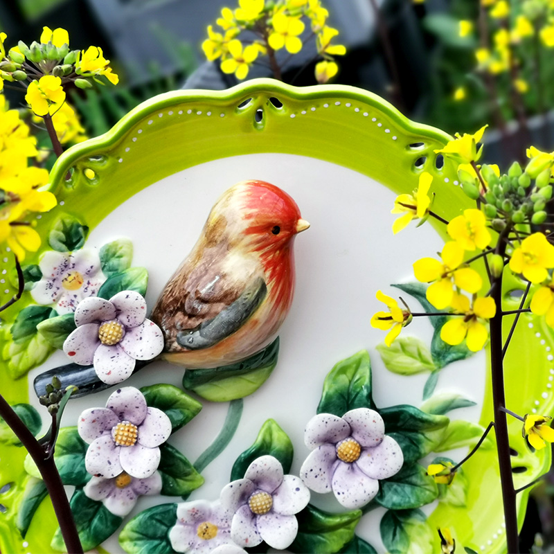 Ceramic relief painted decorative plate blue magpie seat plate red magpie sitting plate gray magpie hanging plate home decorations wall decoration