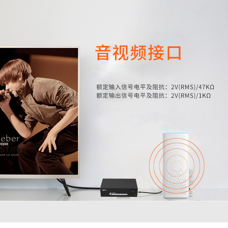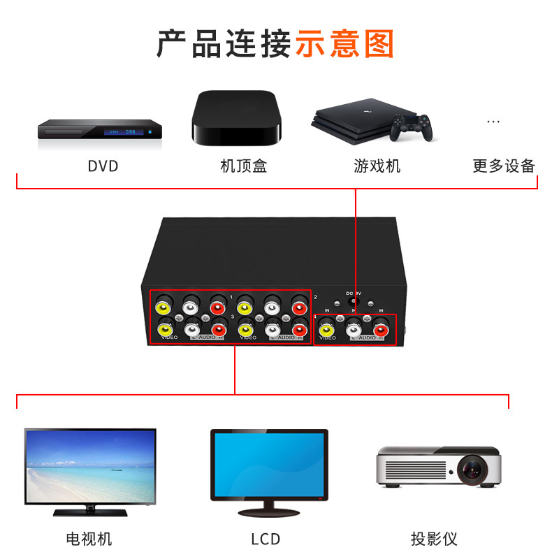 MT-104AV Audio and Video AV Distributor 1 in 4 out of red and white and black DVD TV