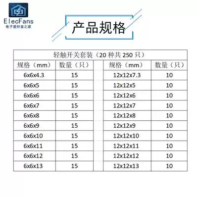 20 kinds of 250 in-line lightweight switch package 6x6 buttons 12x12 micro button touch vertical 4 four feet