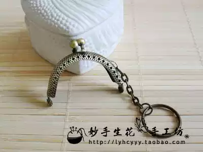 Mouth gold material bag accessories 5CM green ancient semicircular embossed straight head gold key ring