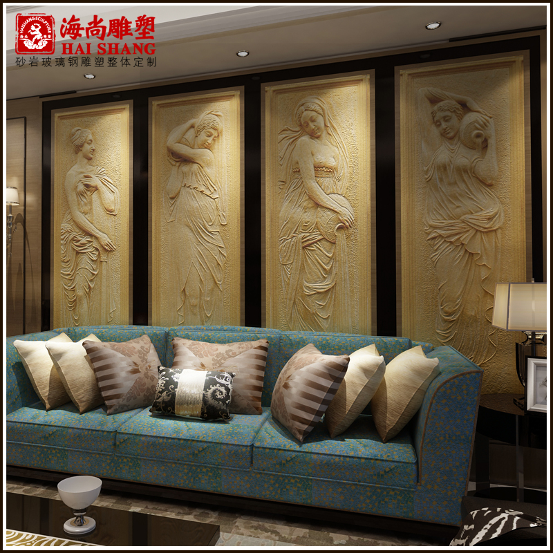 Haishang sculpture sandstone relief European mural background wall bathroom bath foot bath relief-bath map