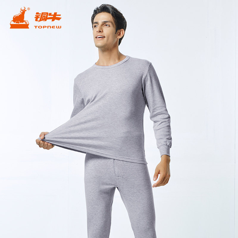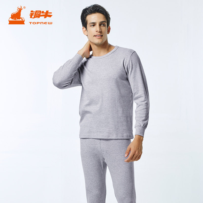 Topnew Copper Cow Men's Underwear Cotton Crew Neck Autumn Pants Warm Underwear Set Men's Fall Winter NN025