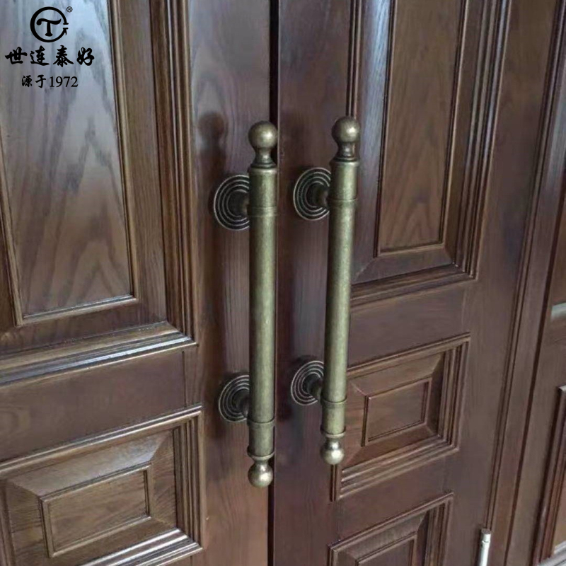 Shi Liantai good full copper Chinese style antique American retro pure copper surface mounted wooden door double open door handle