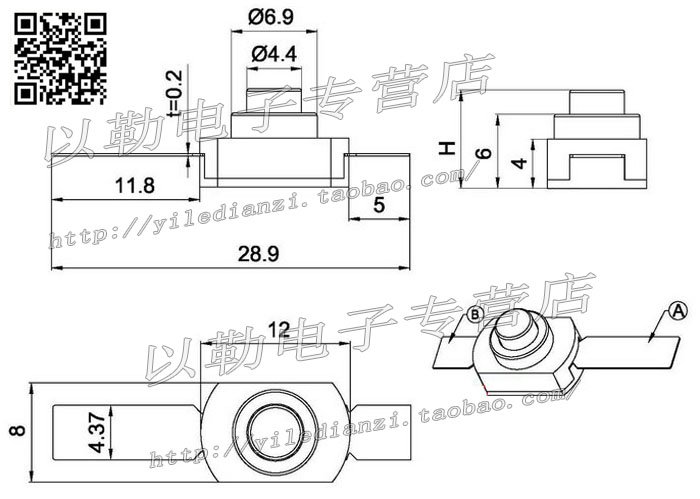 Premium button switch self-lock switch 12 * 8 * 8H open one-off key switch 2-foot table light switch accessories
