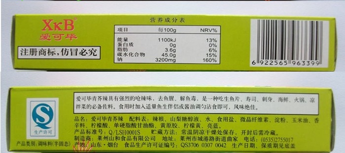 Green wasabi mustard paste sushi material sushi ingredients special food added seasoning XB Aikebi 43g