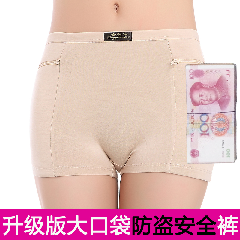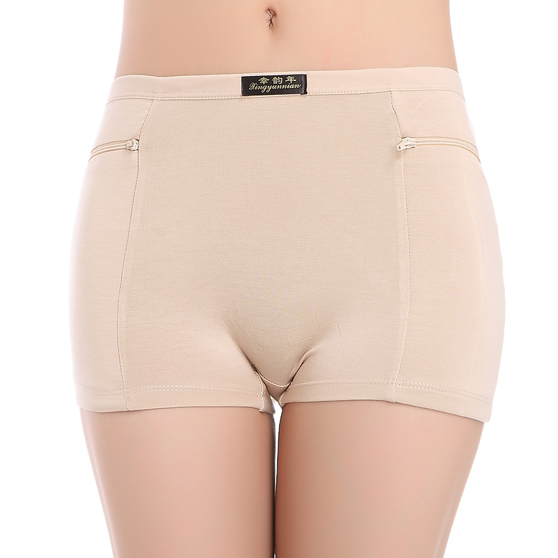 (1 piece)Women's Modal security pants Anti-theft panties with double zipper pockets Panties small boxers