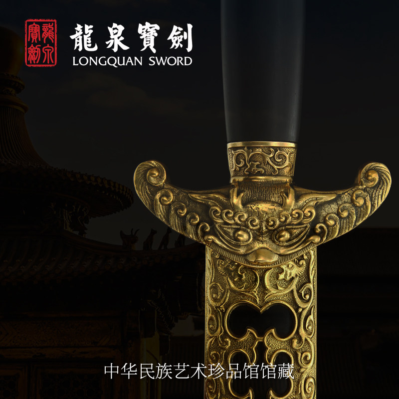 Dragon Springs Treasure Sword Real Bronze Qianlong Sword Flower Pattern Steel Ancient Method Handmade Knife Sword Long Sword Collection Unopened Blade Official Flagship Store