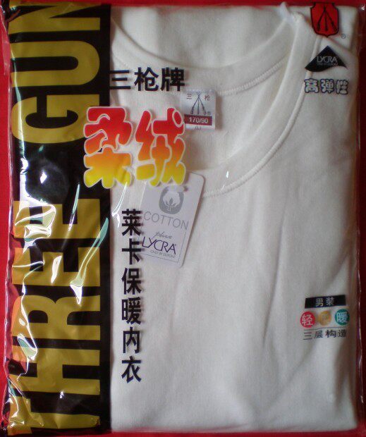 Super value promotion three guns men's round neck underwear soft velvet Lycra high elasticity warm medium thick jacket pants suit