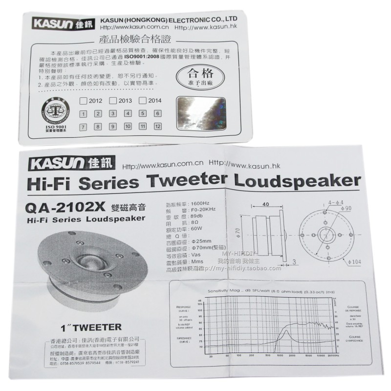 Jiaxun QA2101F 2102X silk film dome 4 inch fever anti-magnetic tweeter unit audio accessories