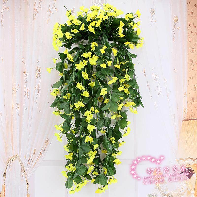 Simulation Flower Vine Wedding Arrangement Props Violet Pendant Lann Hanging Vine Wall-mounted Home Decoration Flower Vine Orchid Evergreen Vines