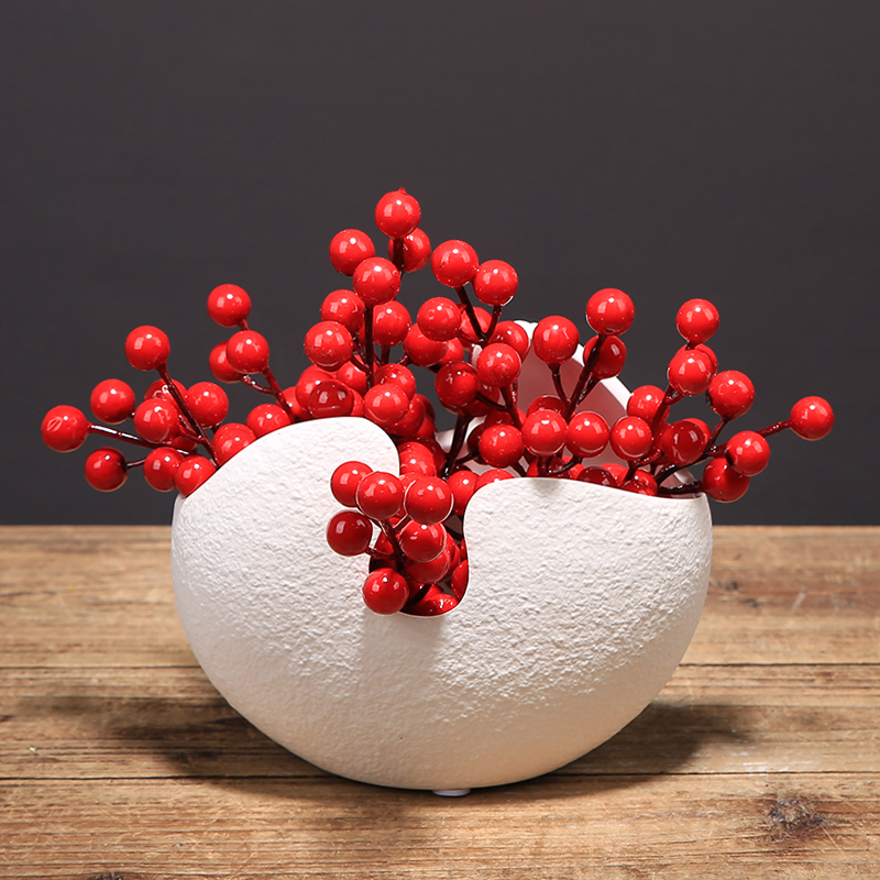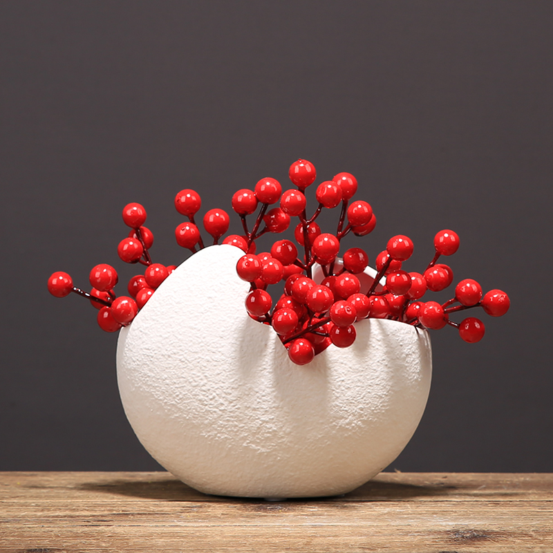Modern minimalist red fruit eggshell ceramic vase Xuanguan Living room swing piece Dining Table Craft Gift Pendulum accessories Furnishing Books Room Adornment