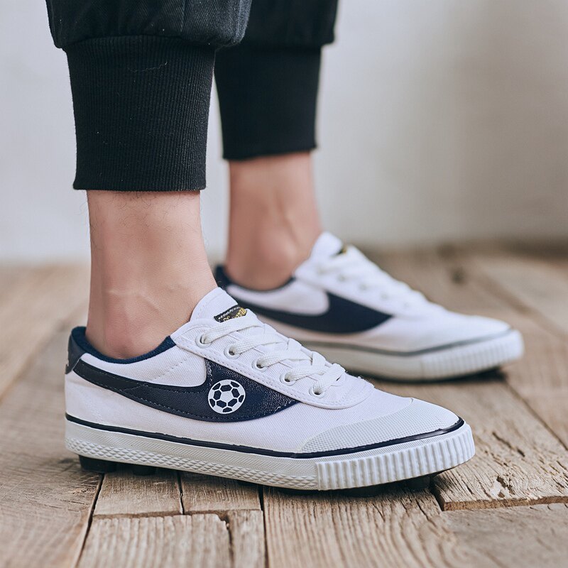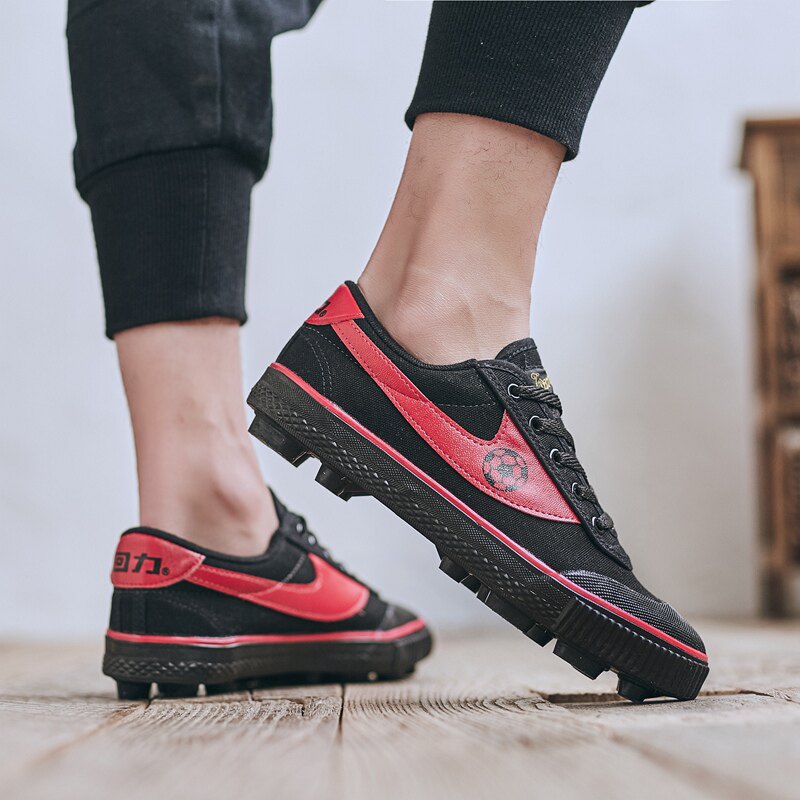 Back Force Classic Retro Training Shoes Artificial Grass Long Nails Student Football Shoes Canvas Shock Absorbing rubber Softbottom WF-1