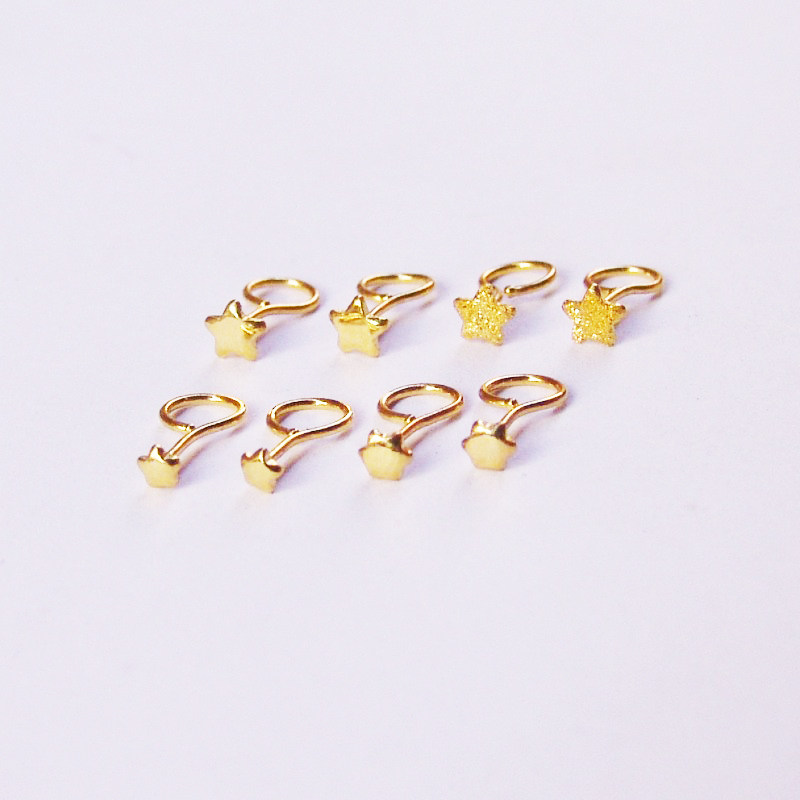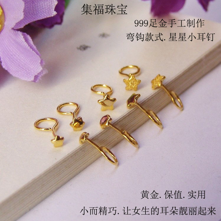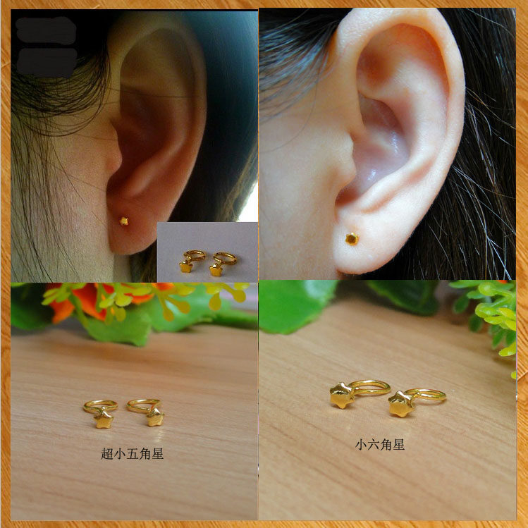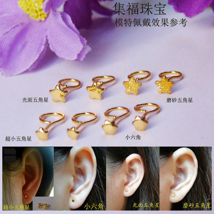 999 pure gold girl with small stars pentagram small ear pin needle foot gold hexagonal star rear bent raised earthen no allergy