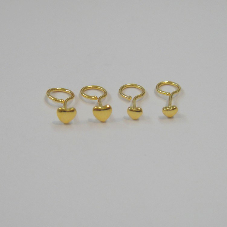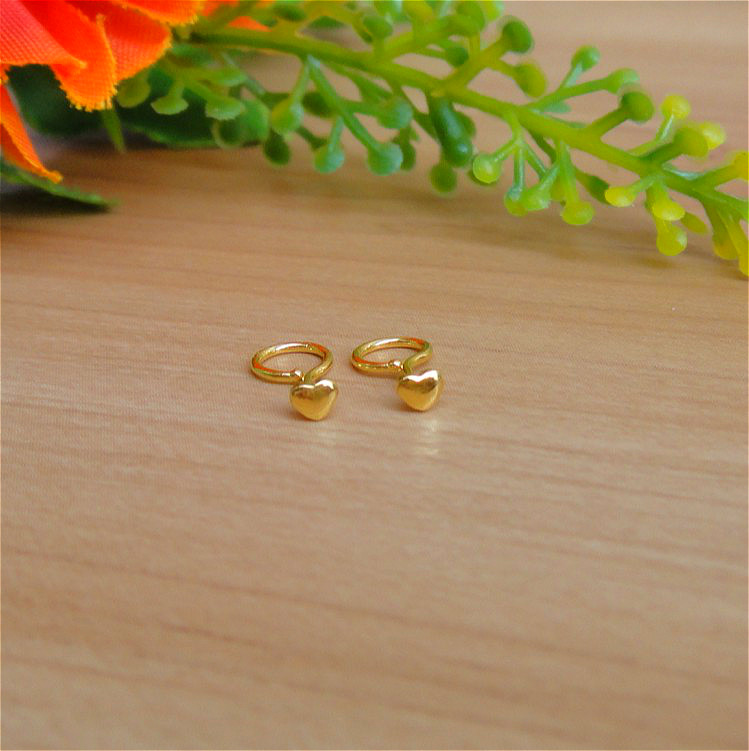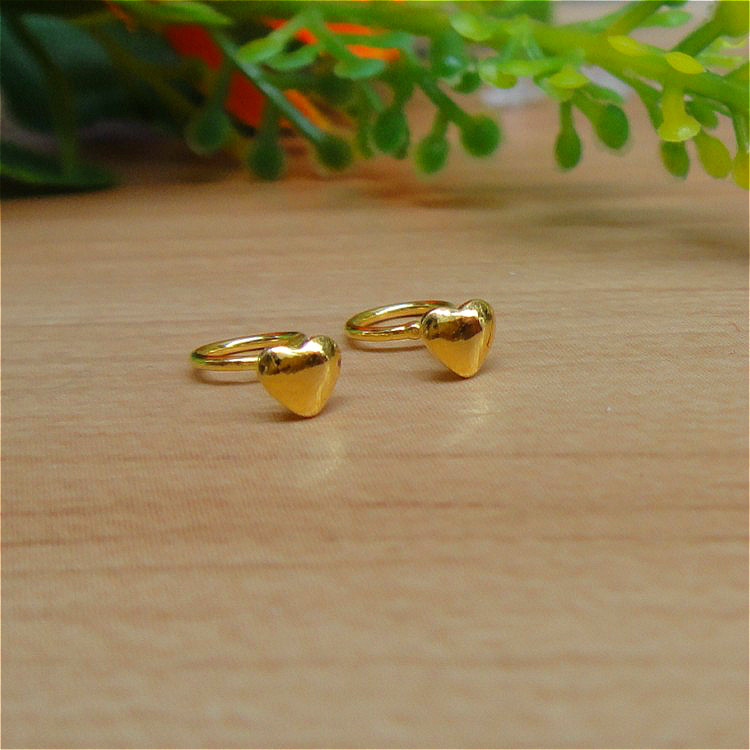 999 pure gold women's small loving ear pin mini 100 hitch heart foot gold-raised earbum with no allergy