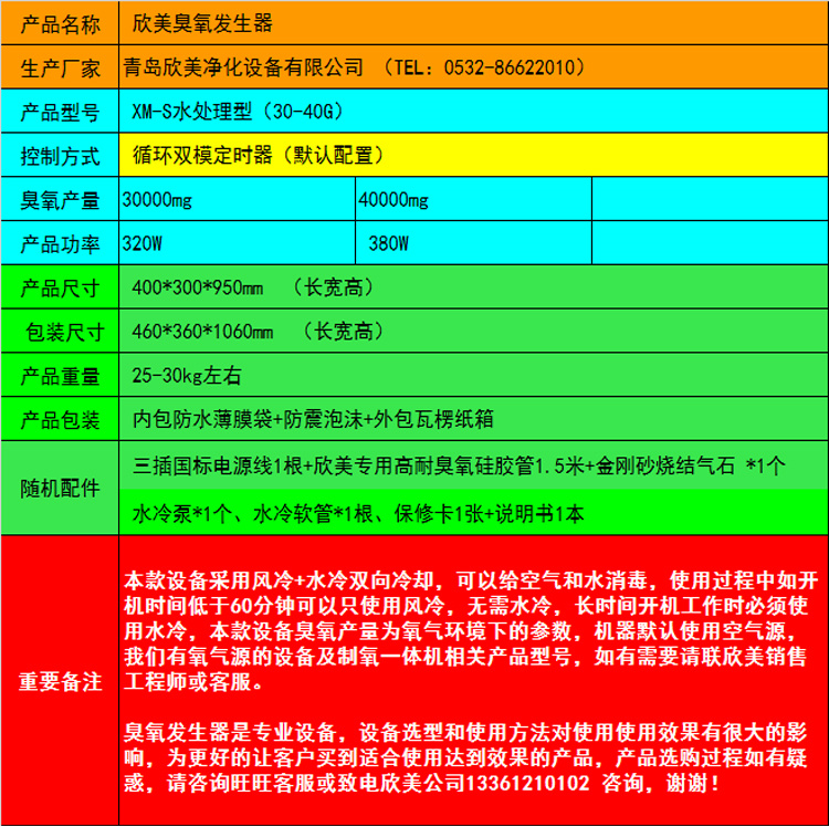 Hinmei XM-S water treatment ozone generator 30g purified water barrel water ozone disinfection machine air source water cooling