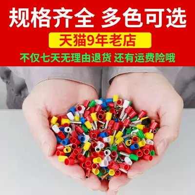 Tubular terminal E1008 Cold-pressed pre-insulated terminal terminal Tubular needle-shaped small black clip copper crimping nose 1 square