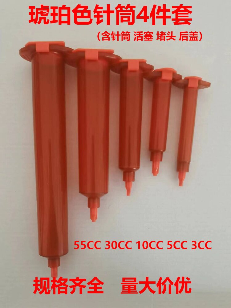Point Glue Syringe Pouring Glue Syringe Mount Glue Beating Glue rubber cylinder (with choke plug back cover 4 pieces) transparent amber color black-Taobao