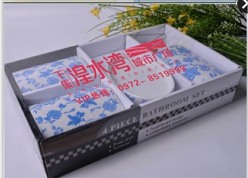 Blue bathroom cleaning utensils4 pieces ceramic bone bathwashtoothpastestoothbrush seat fertilizer disk