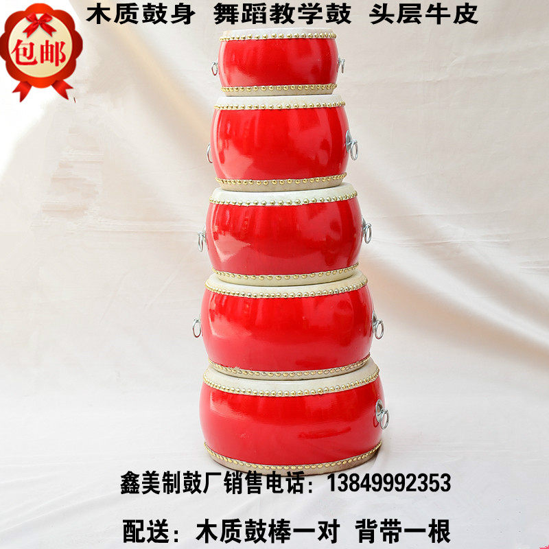 7-inch hall drum wooded flat drum head layer cow leather middrum red drum three-and-a-half performance drum dance teaching drum