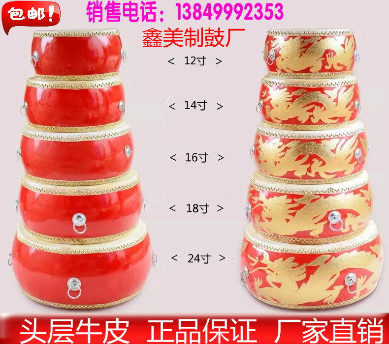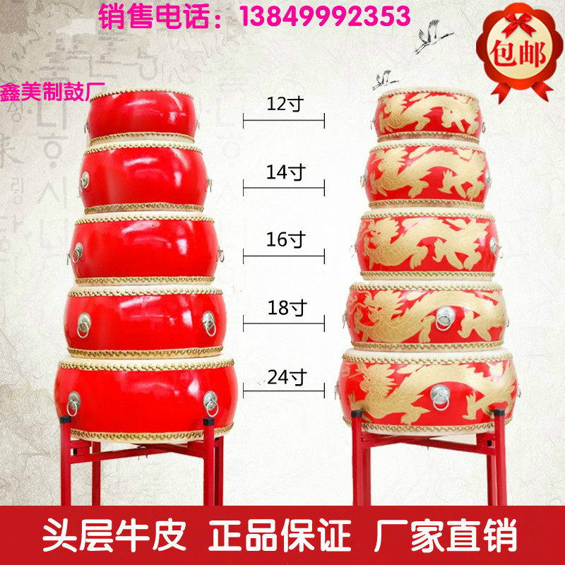 16 Inch Weifeng Gong Drum Beat Drum Low War Drum China Red Drum Head Layer Bull Peel Drum Big Drum Performance Drum