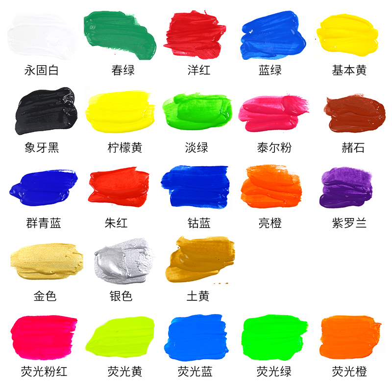 22 lemon yellow 18 magenta 26 ivory black 11 yonggu white 43 light green 38 ochre 15 ultramarine blue 34 pink 32 bright orange 39 vermilion 48 basic yellow 27 earth yellow 14 cobalt blue 45 spring green 47 violet 49 blue green 51 gold 52 silver 53 bronze color