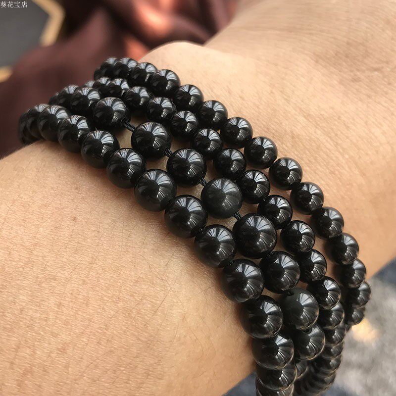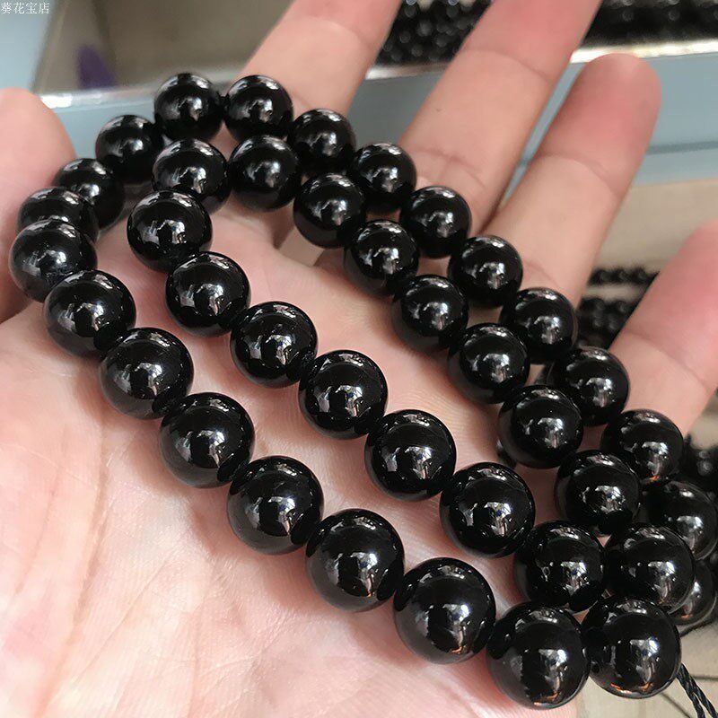 Natural black tourmaline stone DIY hand necklace jewelry hand string loose beads round beads