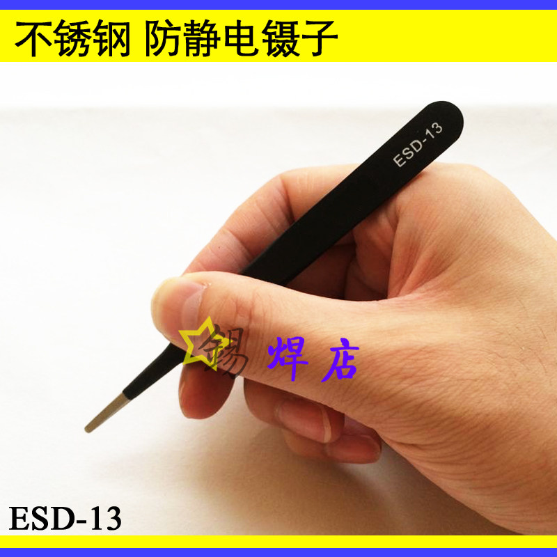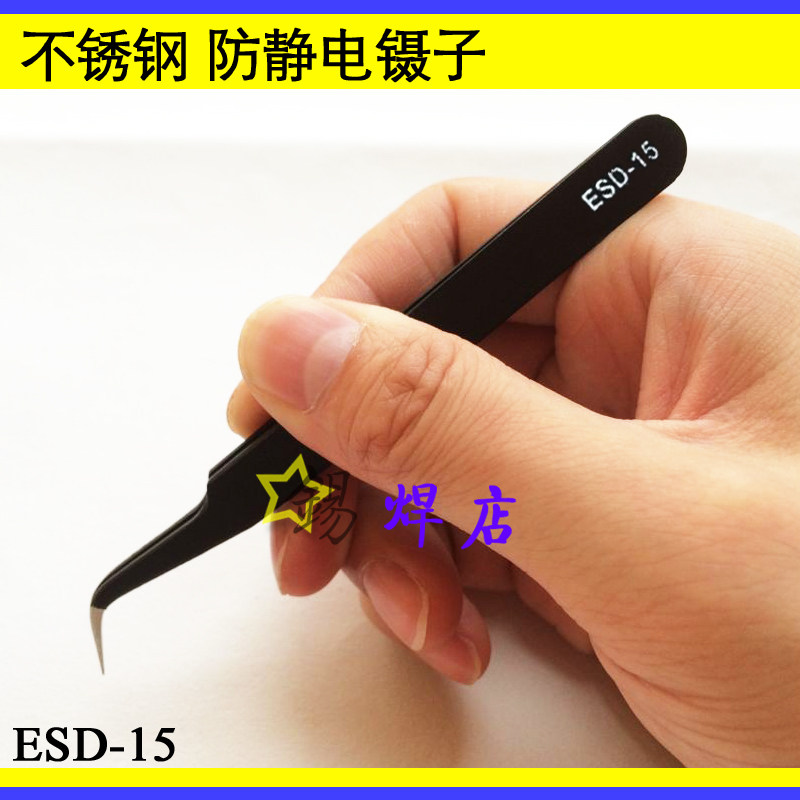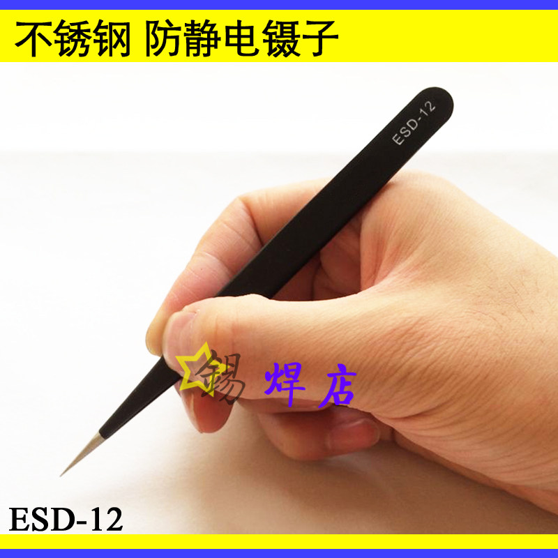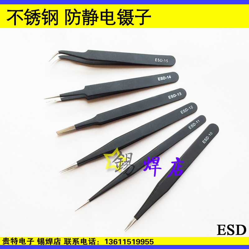 Stainless steel tweezers straight sharp bent tip flat head ESD antistatic tweezers repair mobile phone computer elements clamping tweezers