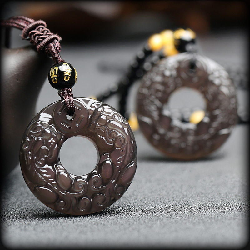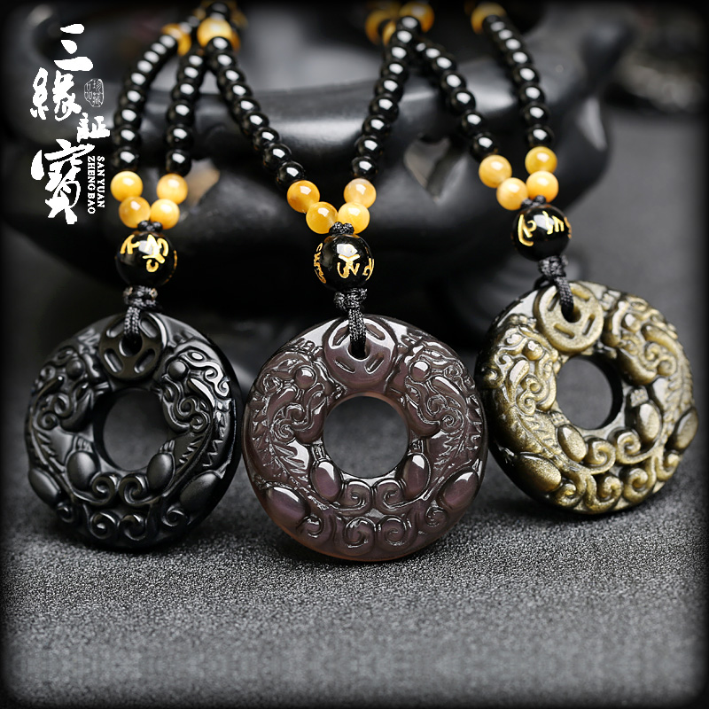 Three-Edge Certificate Treasure Ice Breed Black Yaoshi Pendant Double-Lemple Leopard GREEN BUTTON MEN NECKLACE LOVERS WATER CRYSTAL ORNAMENT FEMALE PISCIU