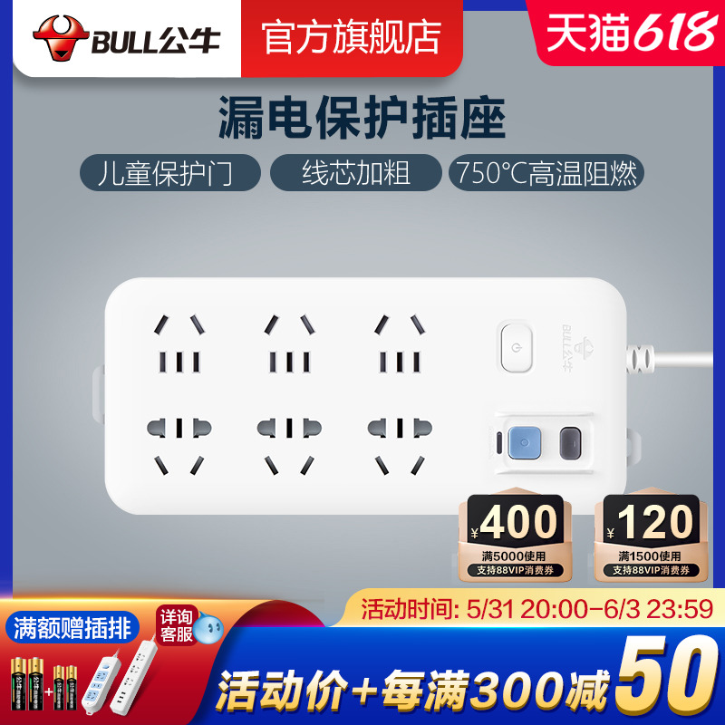 Bull socket terminal board plug board plug leakage protection socket six holes 3 meters new national standard child protection door