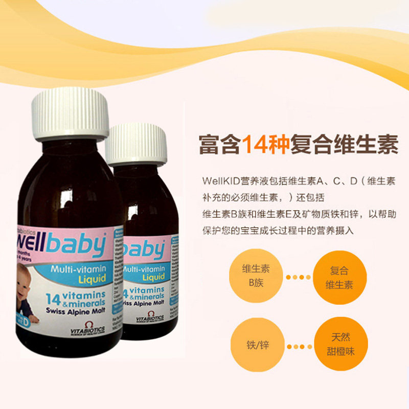 British wellkid 14 kinds of multivitamins baby nutrient solution baby iron supplement zinc vitamin fish oil