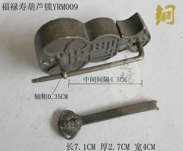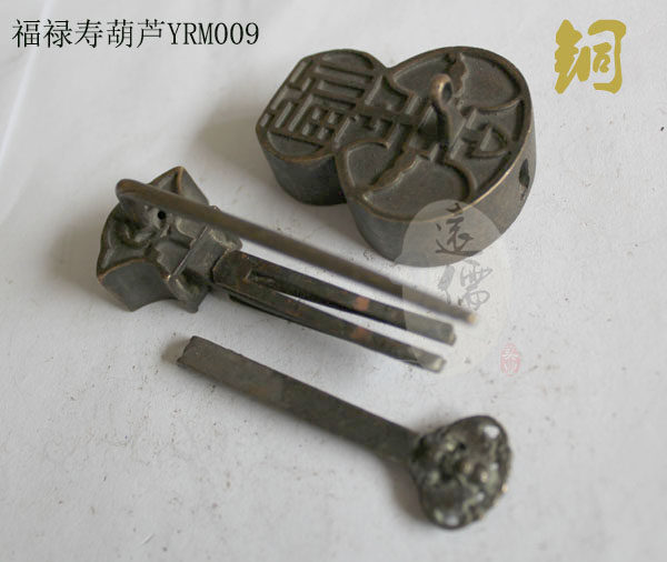 Yuanru copper carving Chinese style antique copper lock padlock collection interesting copper lock big gourd lock Fu Lu Shou style YRM009