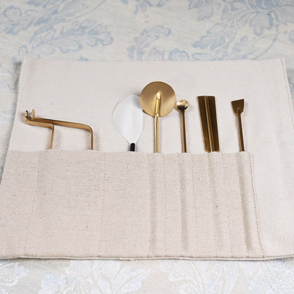 Incense Art Tool 7 pieces of retro ancient bronze seal seal fragrant sepp Incense Scoop spoonful Grey Press Cashier Bag presented with bronze seal mold