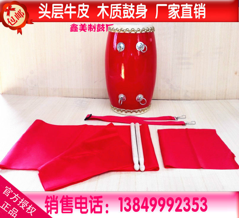 Wooden adult square dance waist drum head layer cowhide Ansai waist drum Yangko drum dance drum 15 cm waist drum